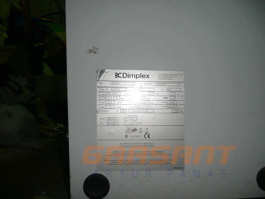 Urządzenie sprawne technicznie, pochodzące z polskiej sieci dystrybucji firmy Dimplex, zdemontowane przez nas działające, wymienione na inną pompę ciepła w związku z modernizacją kotłowni, na wyposażeniu nie ma żadnych innych elementów poza tymi, które widać na zdjęciach – urządzenie kompletne jako takie (nie ma zbiornica CO, CWU, pomp obiegowych itp.). Możliwość obejrzenia w Poznaniu, gwarancja rozruchowa.